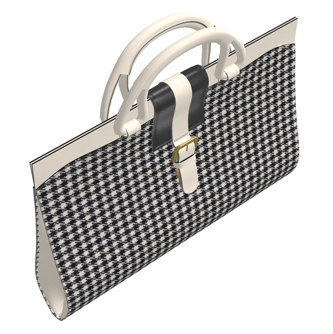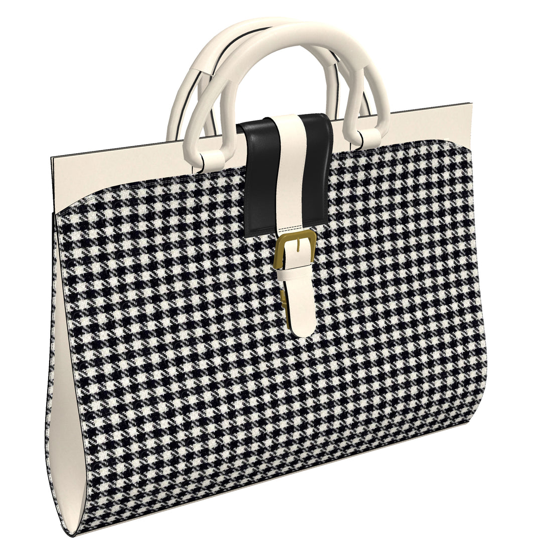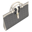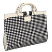 White Houndstooth sides, inside black fabric liner, Black & White painted leather trim and handles.