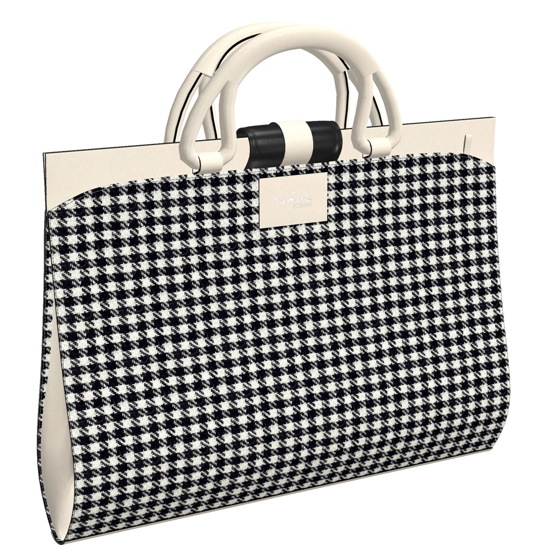 Official Via Avione® Brief Case Black & White Houndstooth