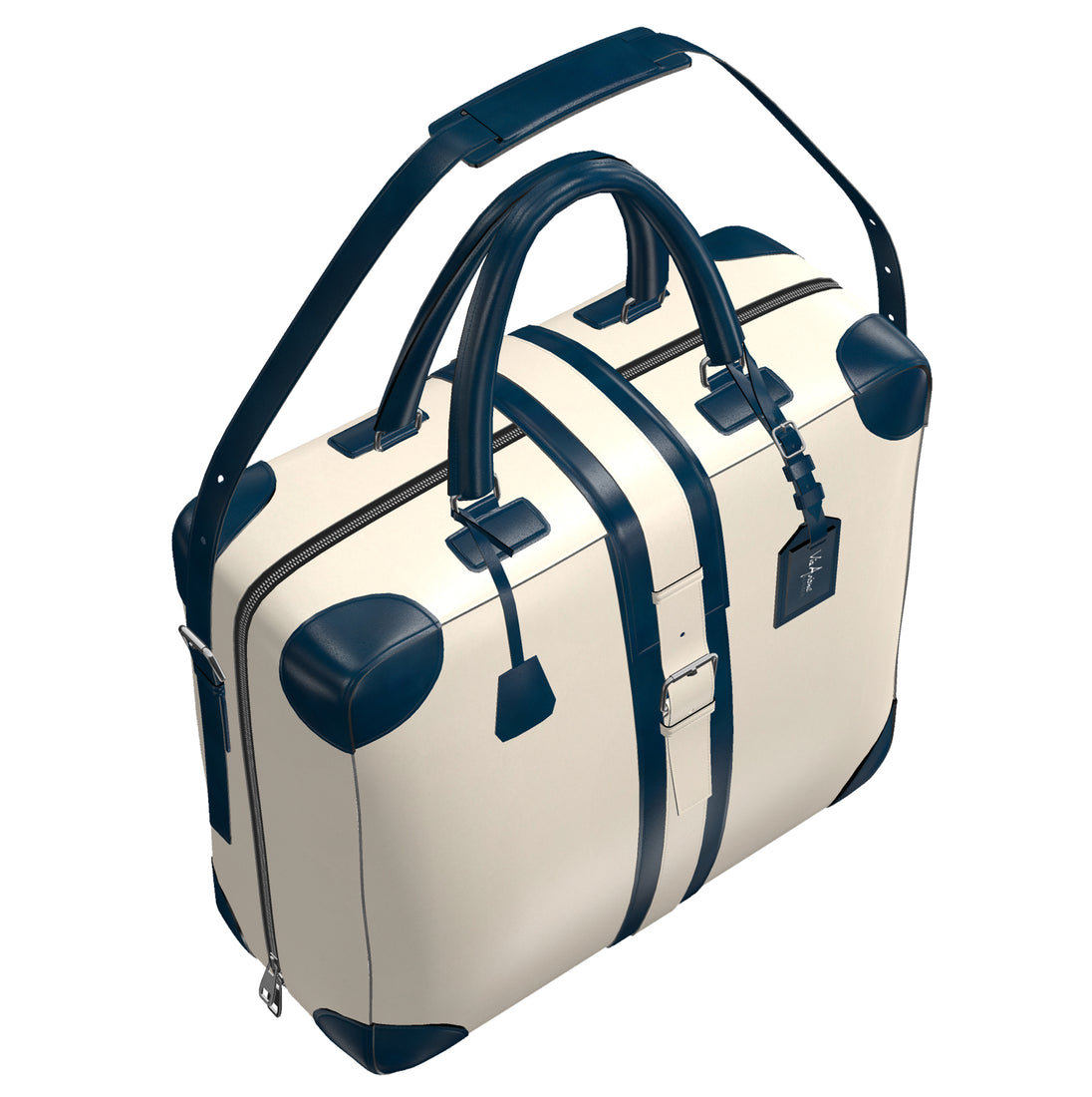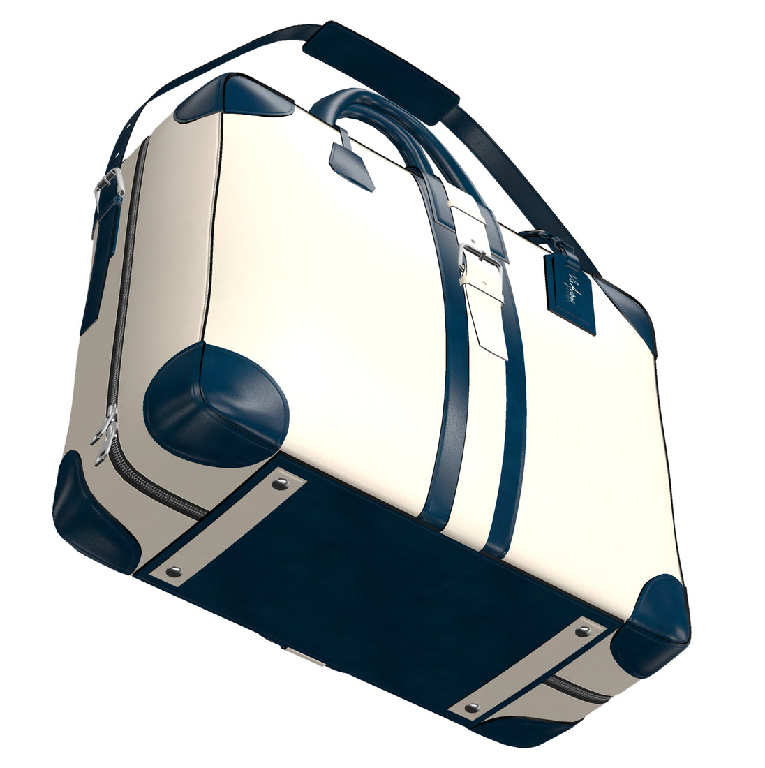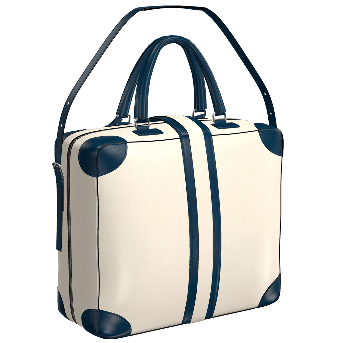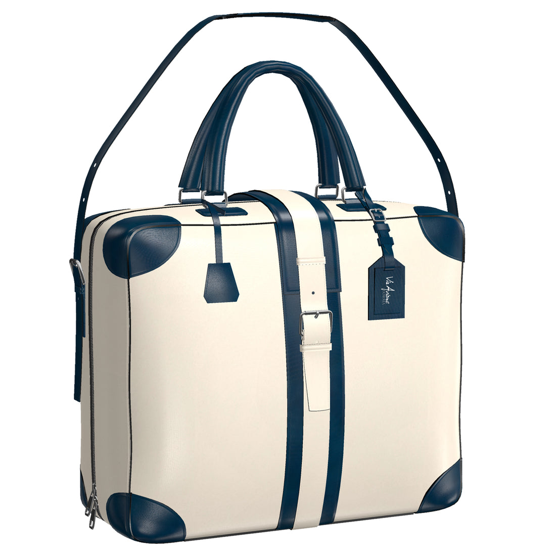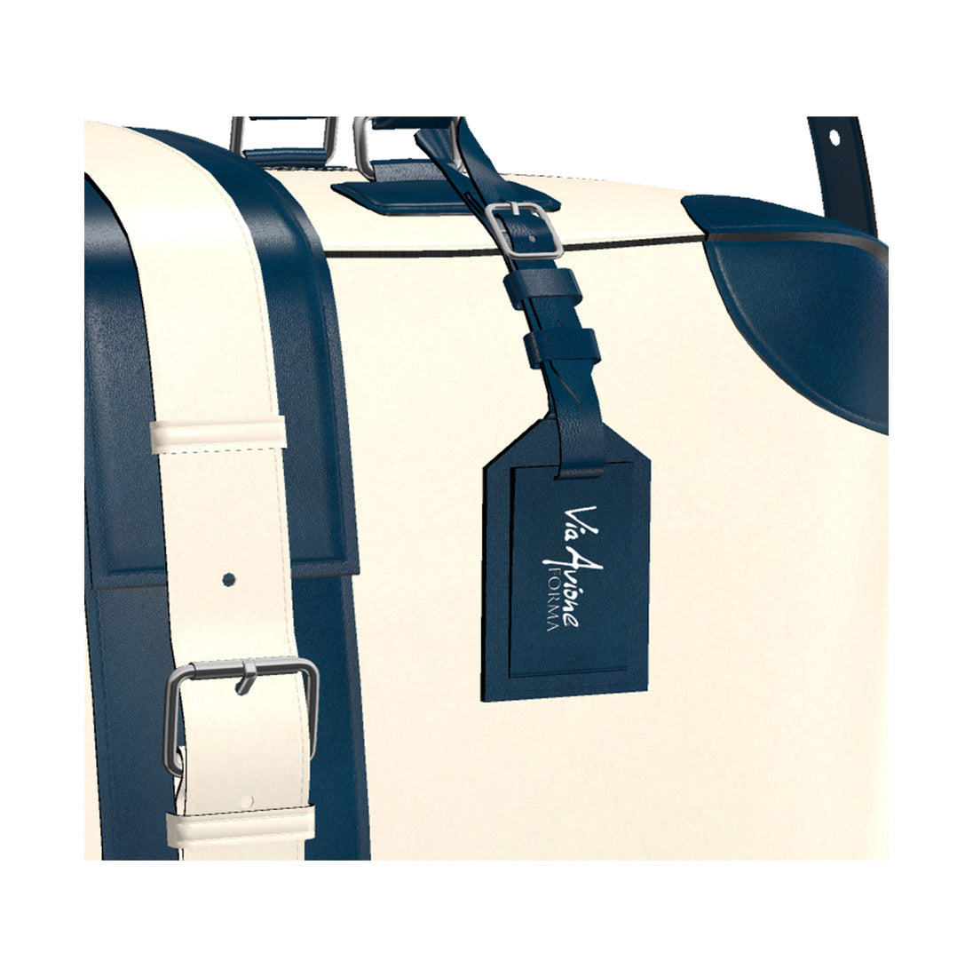 The Original Via Avione® Travel Tote Porcelain & Navy Blue Leather