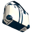 Porcelain White painted Leather sides, inside black fabric liner, Navy Blue painted leather trim and handles.