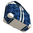 Navy Blue Leopard fabric body and Navy Blue & Porcelain painted leather trim with a black fabric liner.