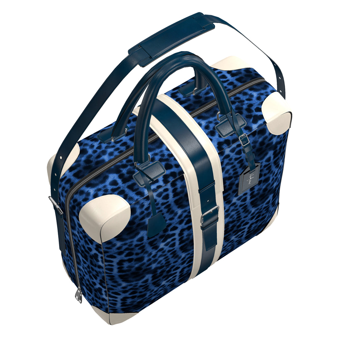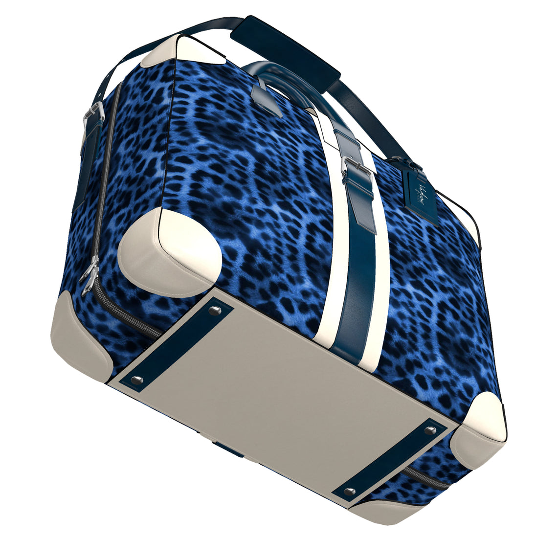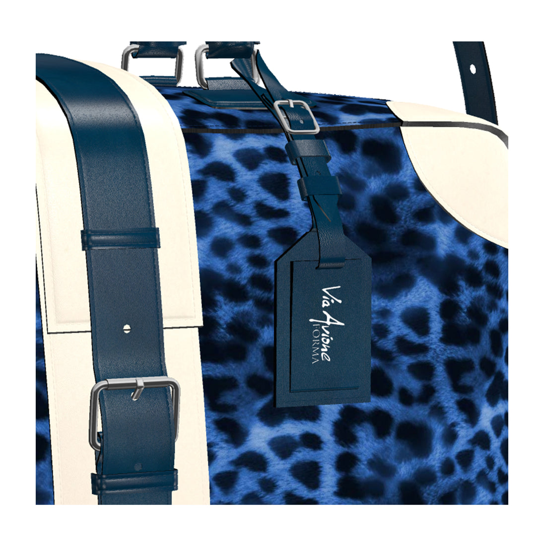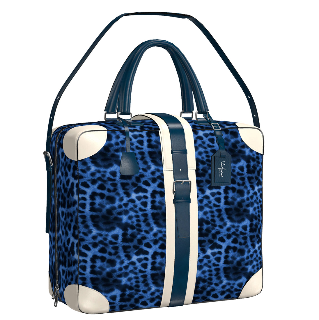 The Original Via Avione® Travel Tote Navy Blue Leopard & Porcelain Leather