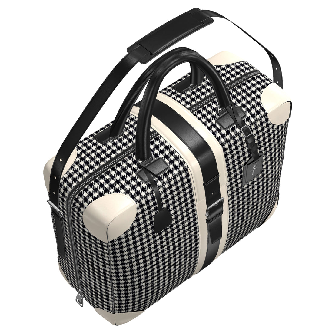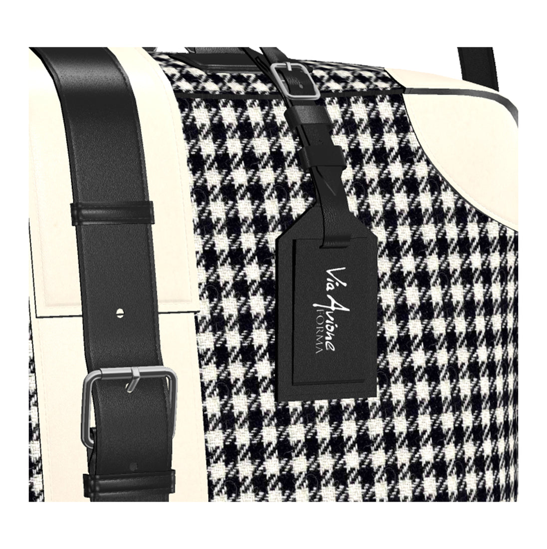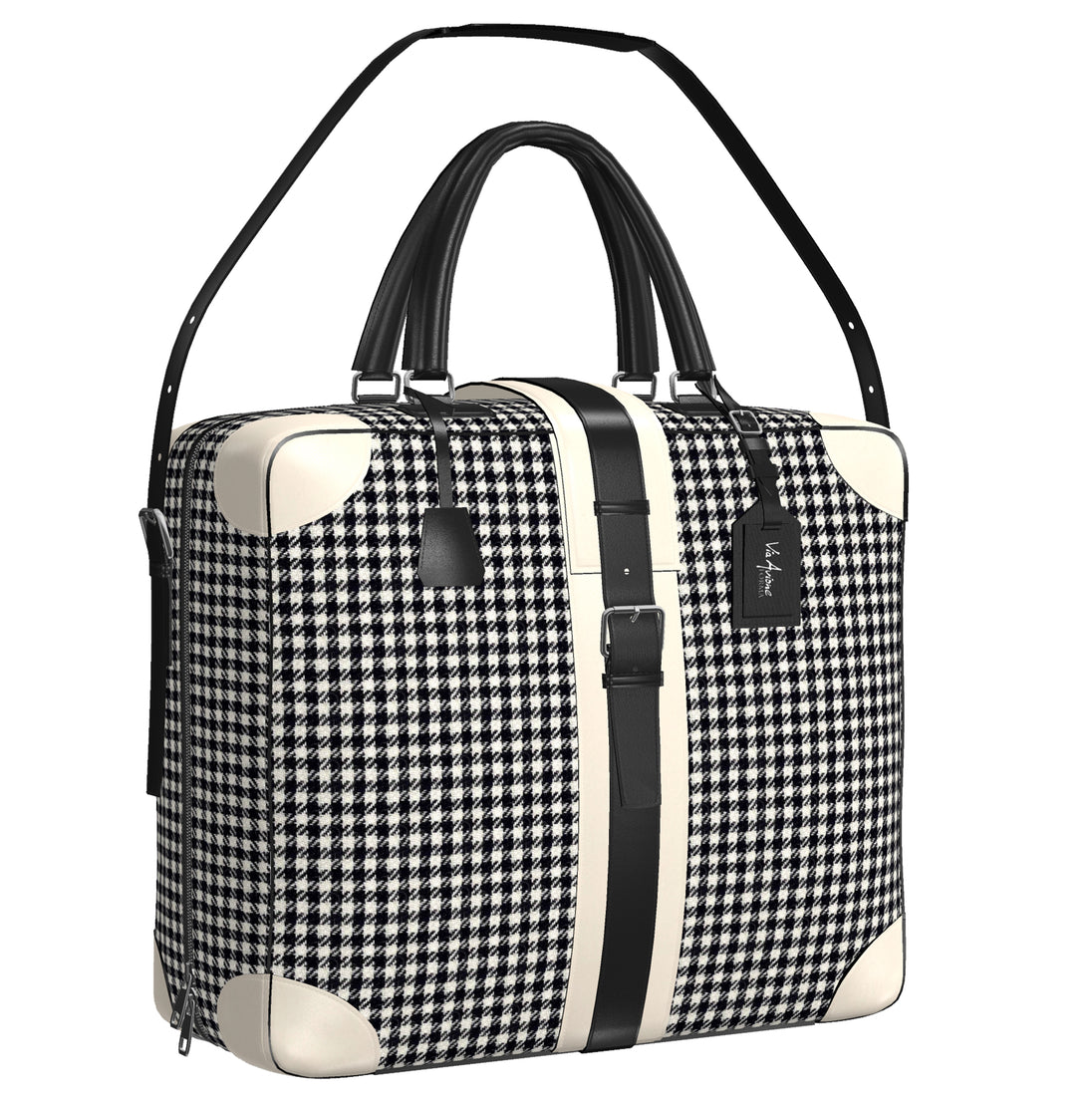 The Original Via Avione® Travel Tote Houndstooth & Porcelain Leather